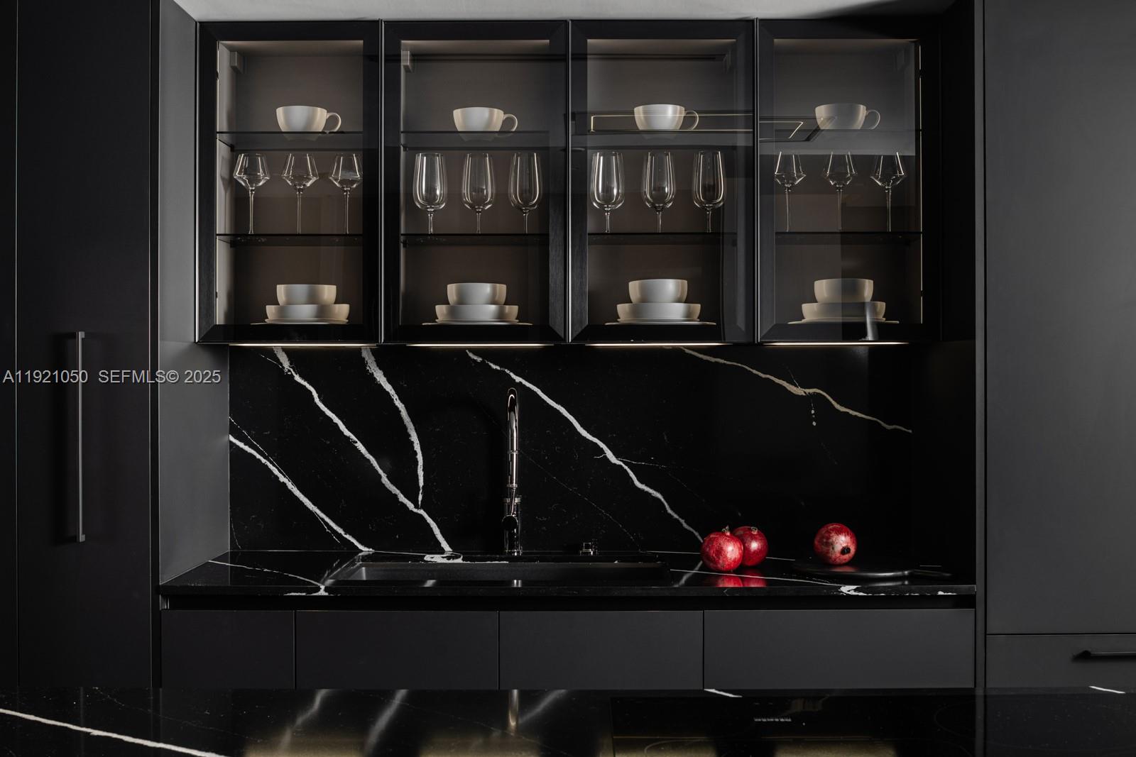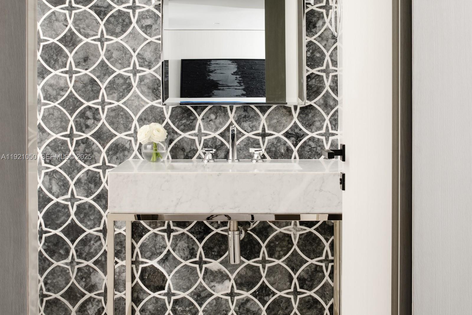 Stunning remodeled southeast corner 3-bedroom residence at MEi Miami Beach, showcasing over $1M in upgrades by designer Janet Patterson. The complete renovation features Nero Marquina marble floors, custom wood wall paneling and flush doors, a European hybrid kitchen with Miele appliances and recessed hood, and designer marble bathrooms. The primary suite includes a steam shower and Toto smart toilet. Additional enhancements include trimless recessed lighting, indirect LED cove lighting, motorized Lutron shades, custom closets with integrated lighting, soundproofing, a Control4 smart home system, new HVAC with linear diffusers, and a striking semi-precious crystal quartz backlit ledge. Floor-to-ceiling glass opens to an expansive wraparound terrace with spectacular ocean views. MEi offers resort-style amenities including beach and pool service, spa, fitness center, tea lounge, concierge, and valet.